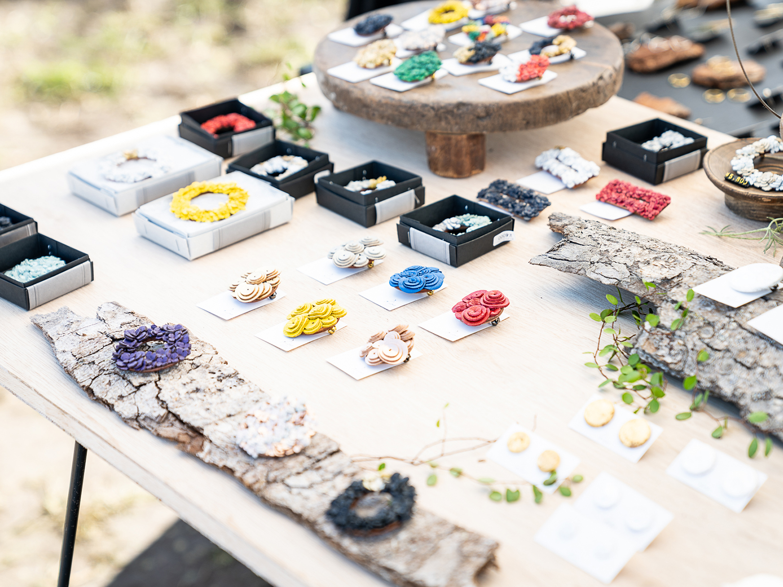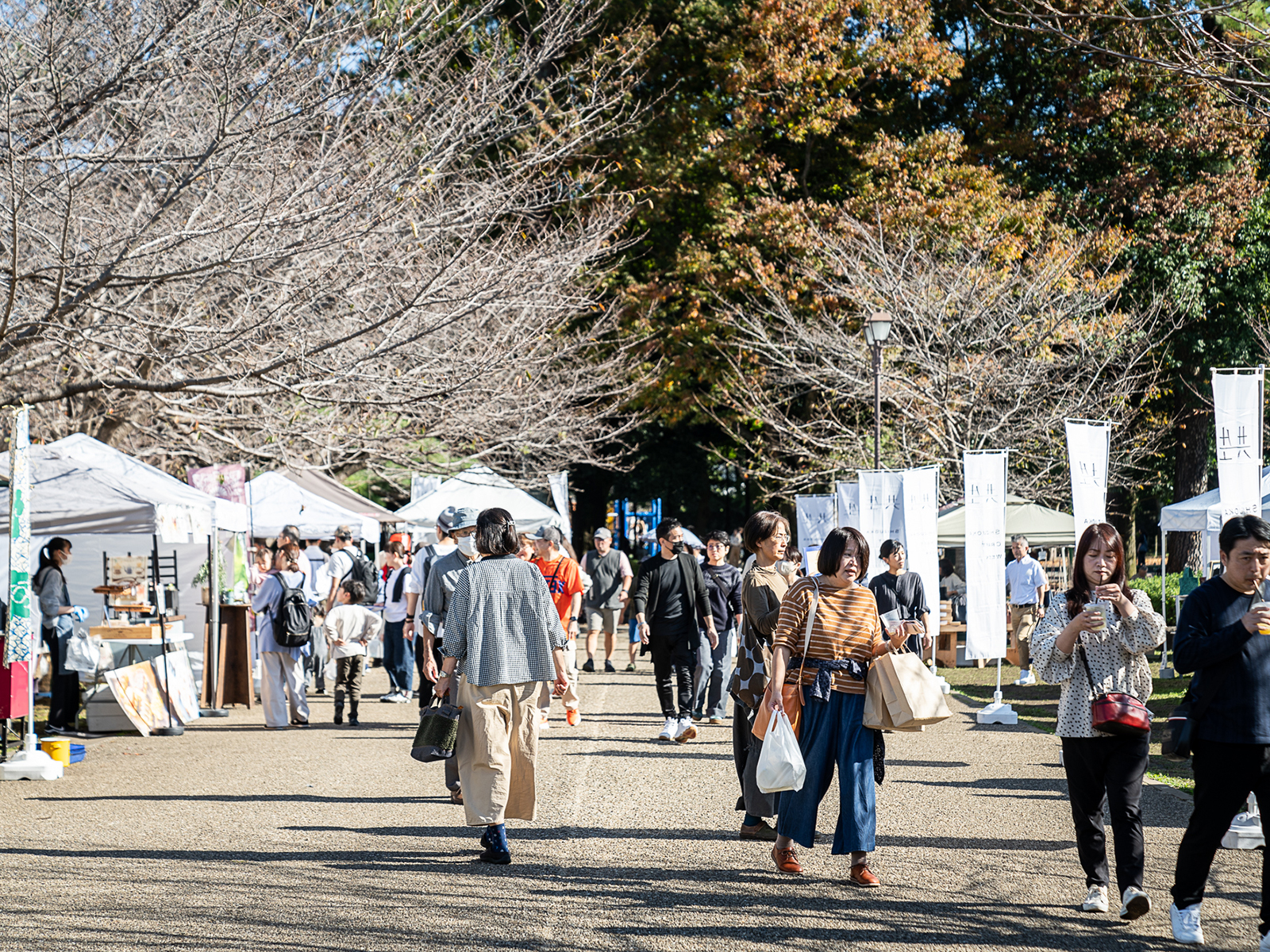 木・陶磁器・ガラス・布・紙・金属などさまざまな素材から生まれる作品、和菓子や焼き菓子コーヒーにビールまで、今年は96店舗が軒を連ねます。